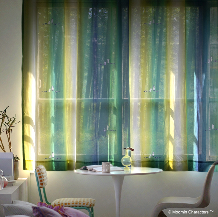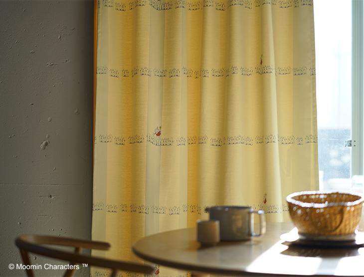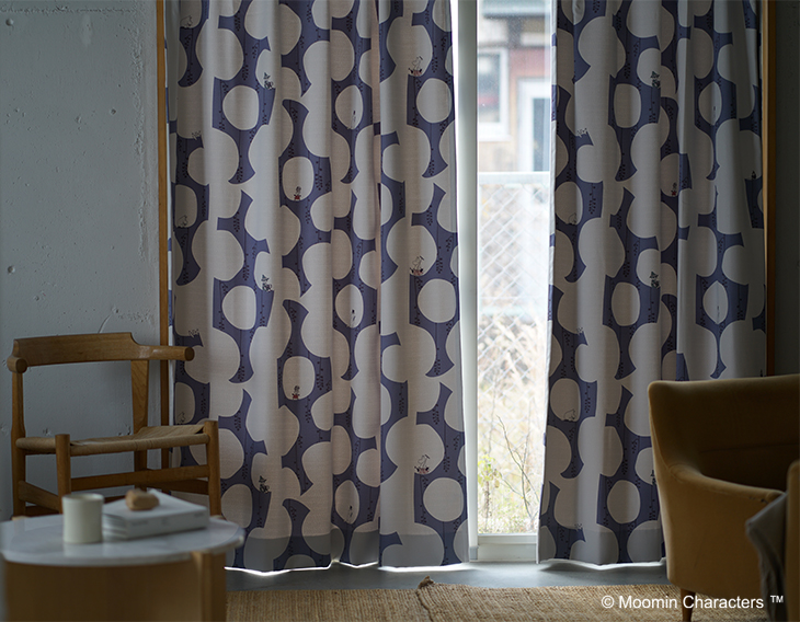 ムーミンと仲間たちがベリー畑で過ごす優しいひと時をデザインした遮光カーテン。自然を愛するムーミン谷の暮らしを毎日の窓辺に届けます。