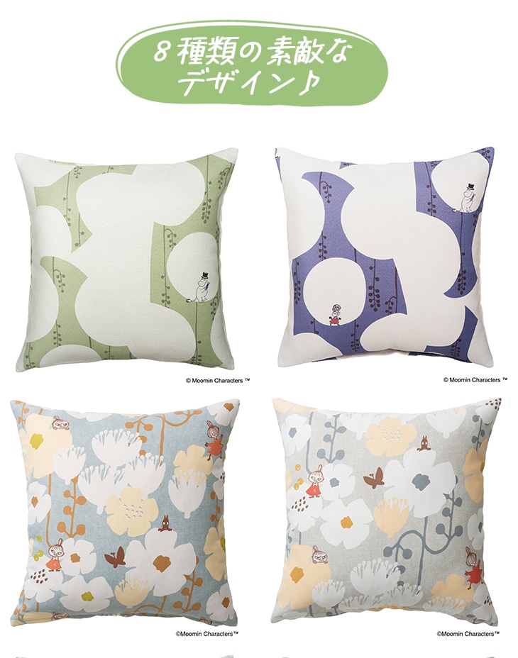 ムーミンと仲間たちがベリー畑で過ごす優しいひと時をイメージしたデザインのクッションカバーです。