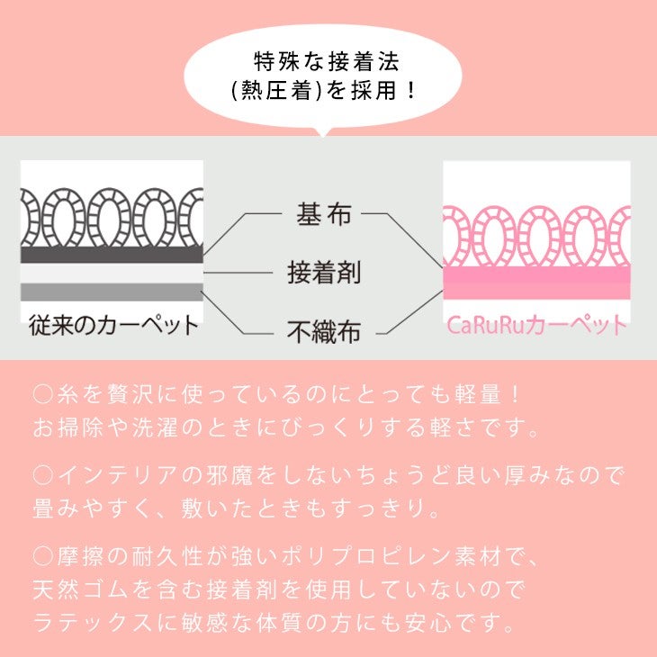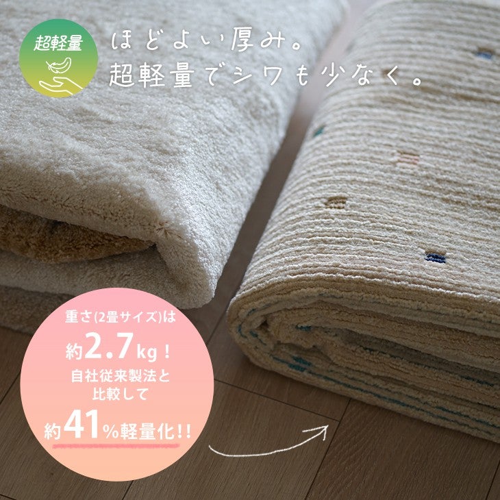 洗濯機OK(ウォッシャブル)、超軽量、滑り止め、床暖房・ホットカーペット対応、低ホルムアルデヒド