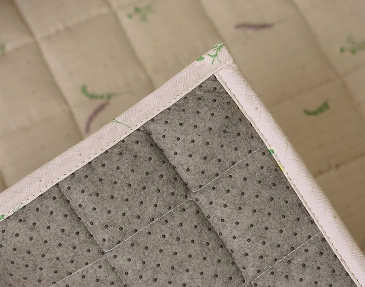ラグの内面には固綿をたっぷり入れているので、ふんわり快適な座り心地。キルティング加工で、中の綿がよれる心配もありません。