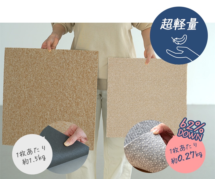 02.「家庭用」をまじめに考えた“軽さ”。従来のタイルカーペットより約62%軽量化!