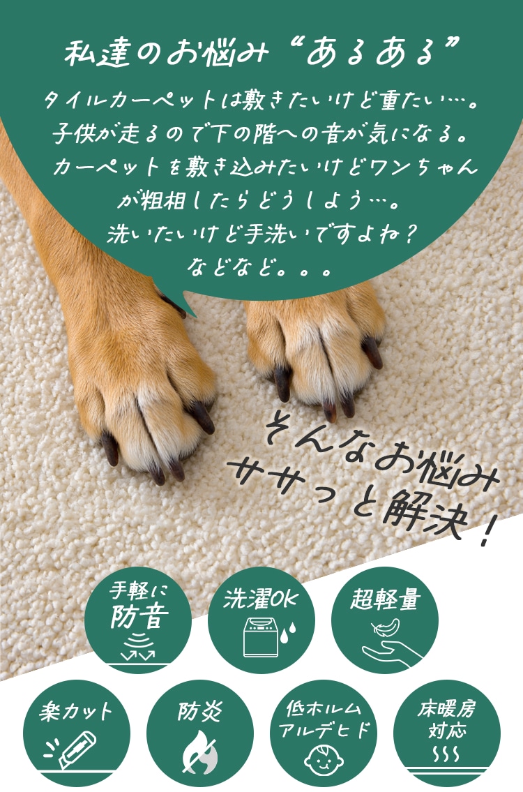家族のことをまじめに考えた、とっても軽くて洗えるタイルカーペット 防音 防炎 洗える タイルカーペット ソフトフィール 40×40cm 10枚セット販売