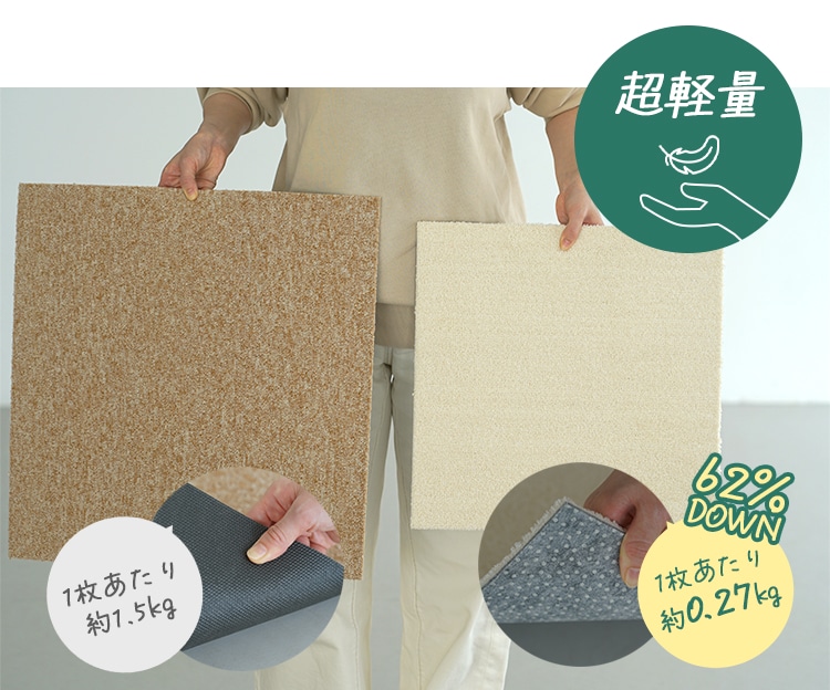 02.「家庭用」をまじめに考えた“軽さ”。従来のタイルカーペットより約62%軽量化!