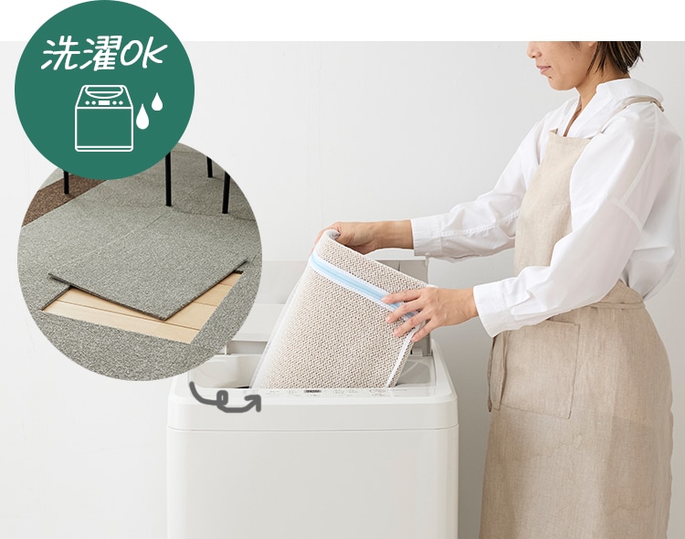 汚れた部分だけ外してお洗濯ができます。洗濯機で丸洗いが可能ですので、毎日清潔にお使いいただけます。(※洗濯ネット使用。)大きなラグを洗うよりも手軽で簡単。