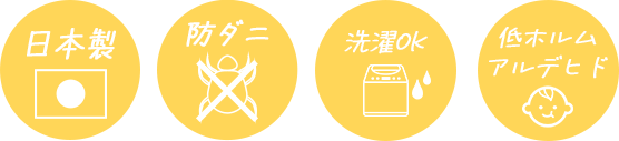 低ホルムアルデヒド検査にも合格した赤ちゃんから大人まで使える安心なファブリックです。