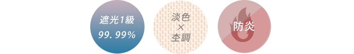 コーティングなどの加工ではなく、緯糸の密度をしっかり高めることで遮光性能を確保した遮光カーテン。遮光率99.99%以上だから昼も夜も光が漏れにくく、防炎加工で高層階にも対応している防災意識の高い方にもおすすめの日本製カーテンです。