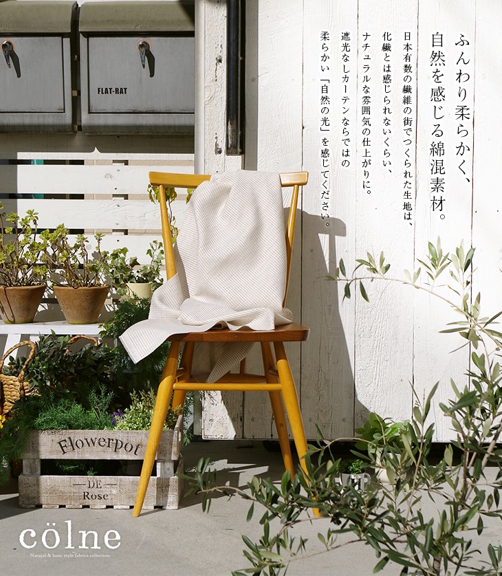 - 細かいストライプ柄をナチュラルな風合いに仕上げた無地調カーテンです。