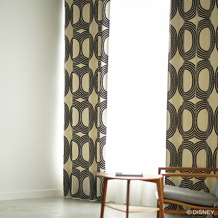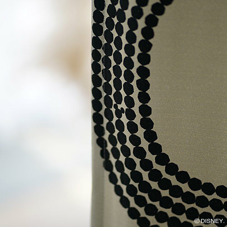 Disney ドットのリングと隠れミッキーがおしゃれなデザイン。洗える遮光カーテン