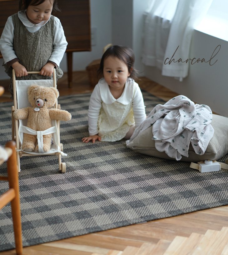 - 洗える 軽量ラグ ブロックチェック (130×185cm)