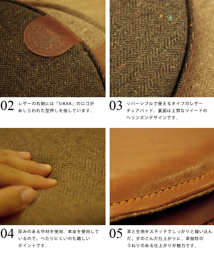 - 国内有数の皮革素材の生産地のひとつ、兵庫県たつの市で作られる「たつのレザー」を使用したチェアパッド。
