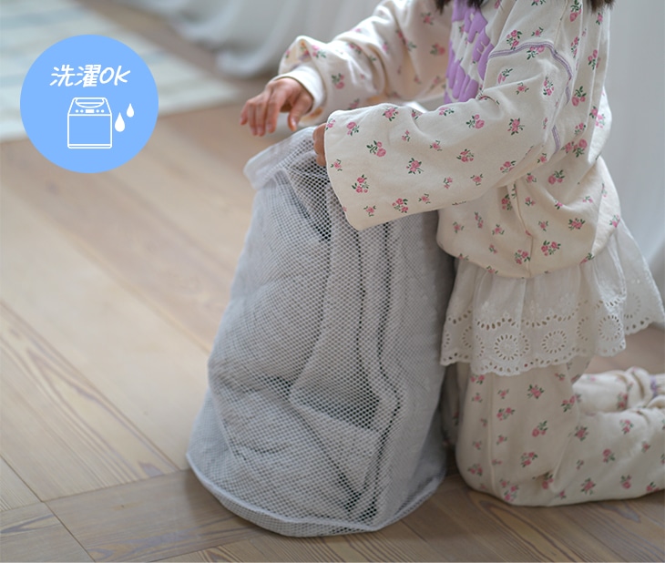 洗濯機で丸洗いが可能ですので、毎日清潔にお使いいただけます。(※洗濯ネット使用、ドラム式洗濯機不可。)