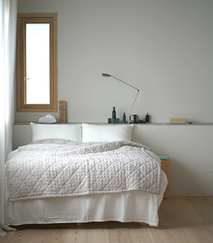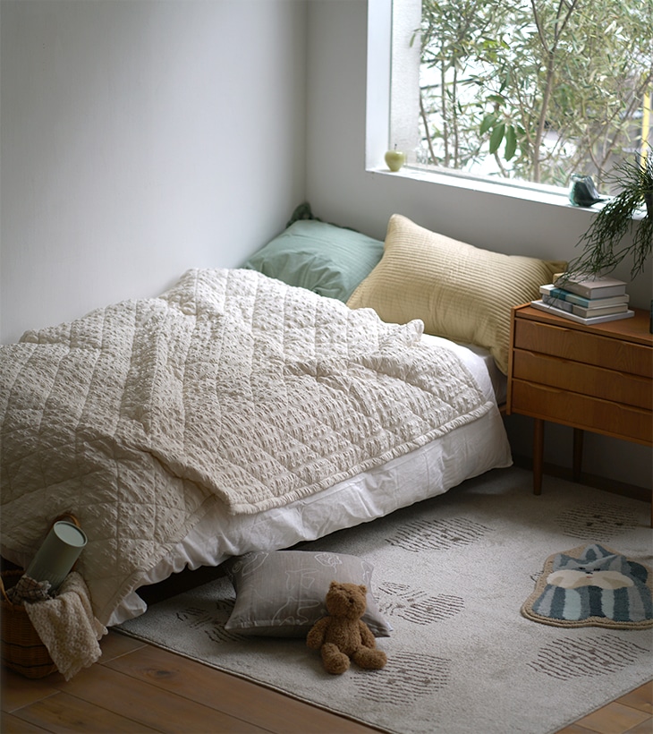 シワ感のあるサッカー生地に撥水性を持たせた、おしゃれなキルトケット。