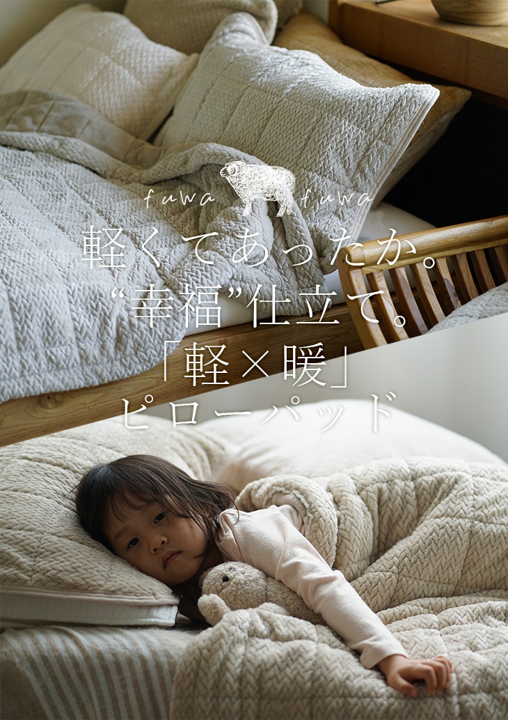 上質な針抜きフランネルジャガードを使用し、ふかふかとした優しい肌触りと、程よい厚みの中綿が肌寒い季節の枕の“ひんやり”を軽減してくれるピローパッドです。
