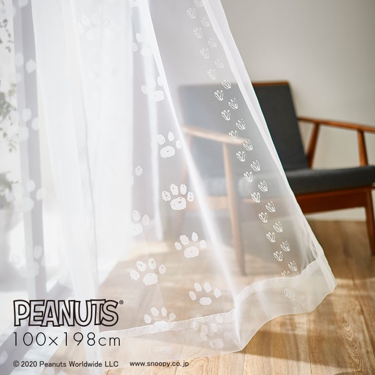 - レースカーテン PEANUTS/ピーナッツ フットプリントボイル(幅100×丈198cm)