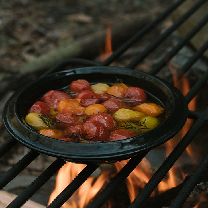 蓋を閉じて料理の作り置きや直火での温め直しも可能です。