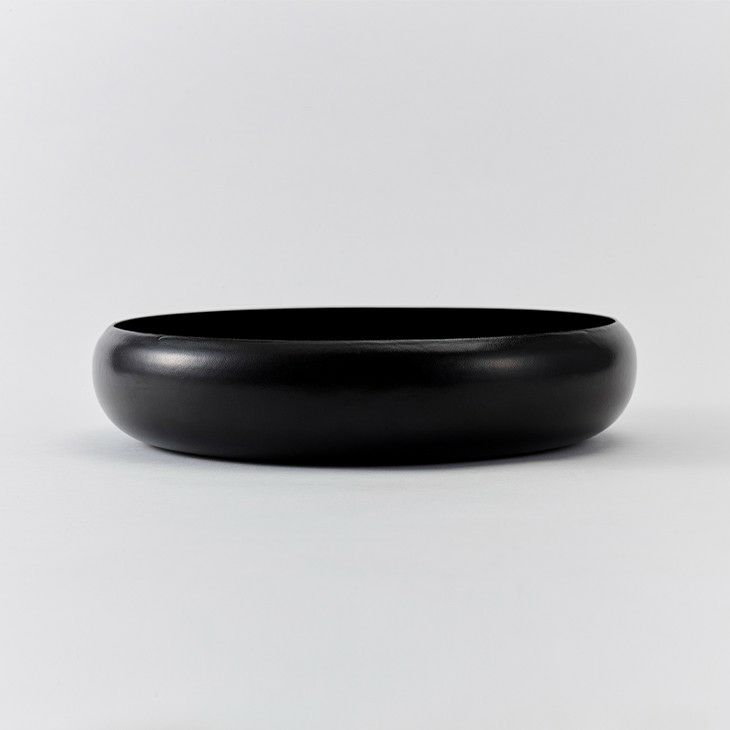 陶器のように柔らかな質感と金属の強さを生かした薄いフチのボウルです。
