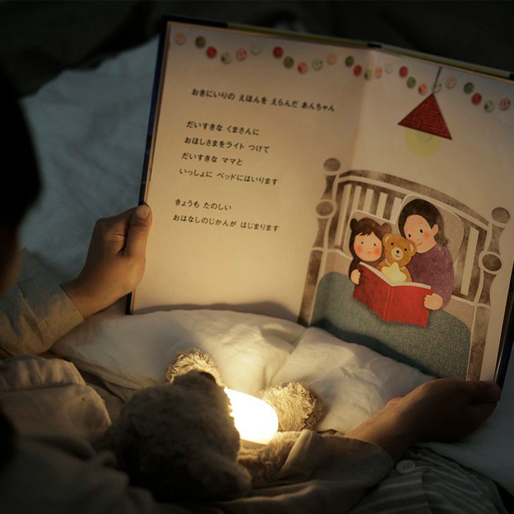 - 寝る前の親子の時間をより心地よく演出してくれる、絵本の読み聞かせに最適なライトです。