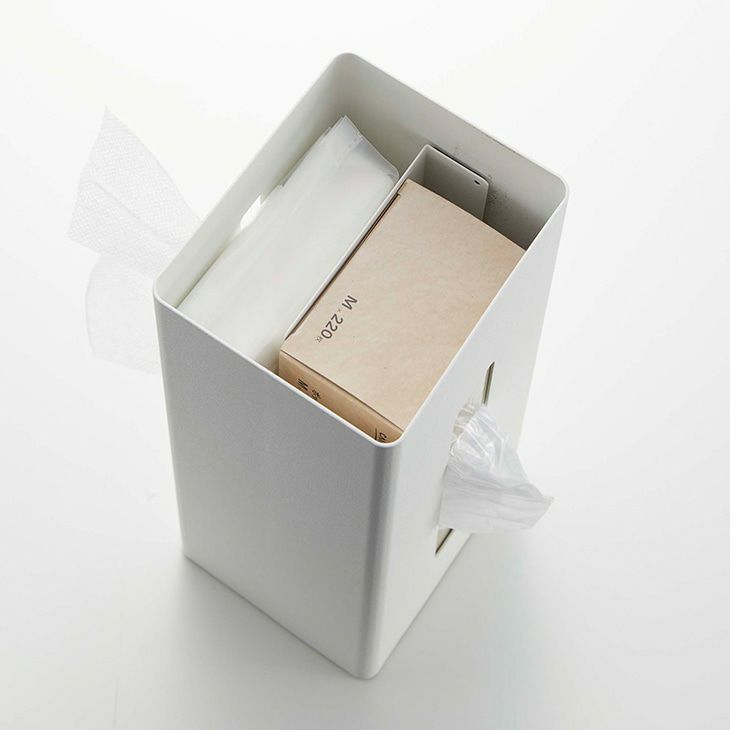 - 前と後ろ両面使えるティッシュケース。縦型だからコンパクトで省スペース。マグネット付きの仕切りがあるので容器の中を自由に調整できます。ダイニング 縦型なので場所をとりません。キッチン ポリ袋等も収納できて便利。洗 面 ペーパータオルにも対応。2種類の紙を同時に収納できます。マグネットの仕切り付き。