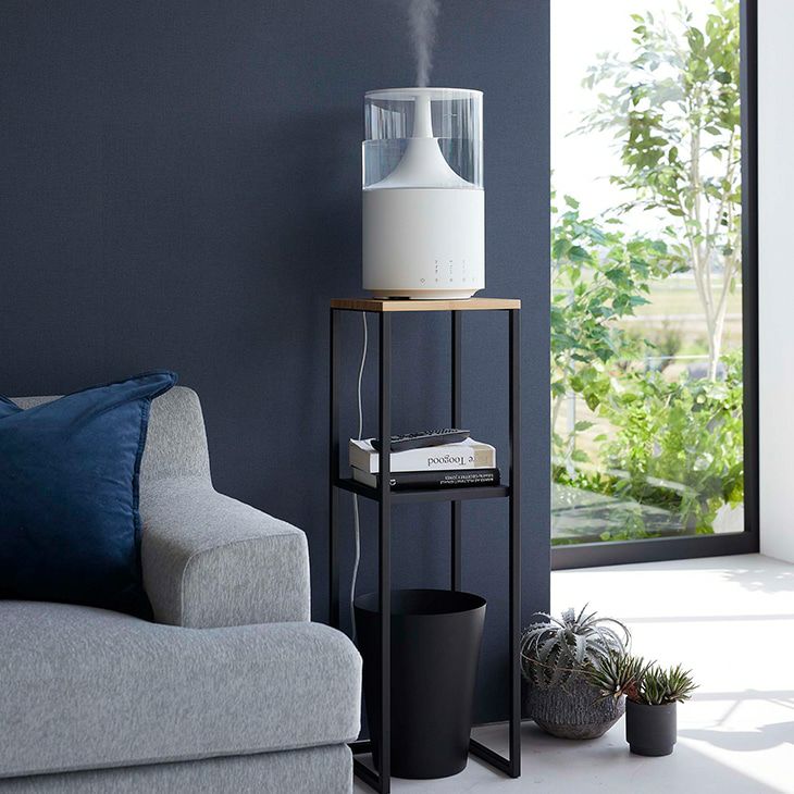 高い位置に加湿器を置くことで、放出されたミストが気化しやすくなり、効率的に加湿ができる加湿器スタンド。