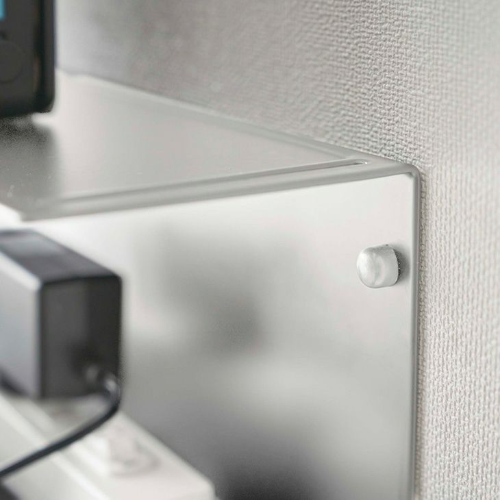 デスク下や壁面、スチールワゴンなどに簡単に取り付けできる電源タップ収納です。
