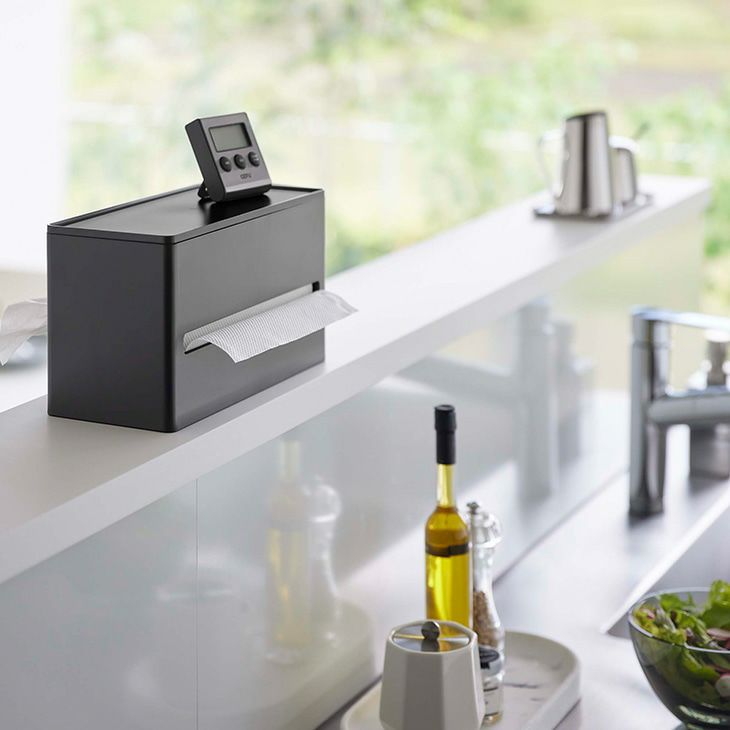 キッチン側からペーパータオル、ダイニング側からティッシュペーパーなど用途に合わせて両面から取り出すことができます。