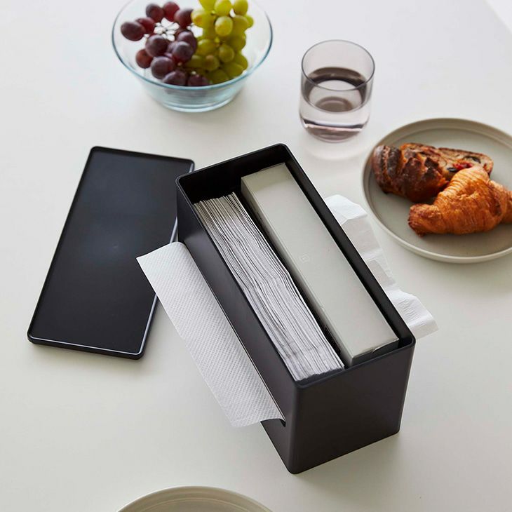 - ティッシュペーパーやペーパータオルなど2種類のペーパーを同時に取り出せる両面ティッシュケース。