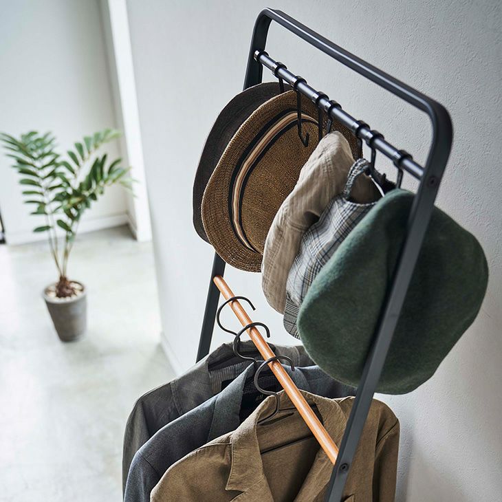 - コーディネートをそろえて収納できる帽子収納フック付きコートハンガー。