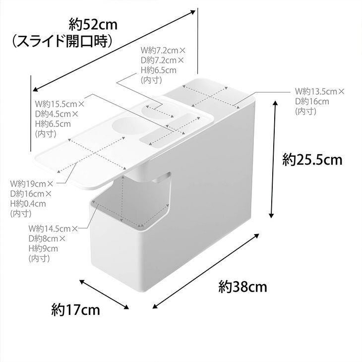 約W38×D16.8×H25.5cm(蓋スライド開口時:約W52cm)