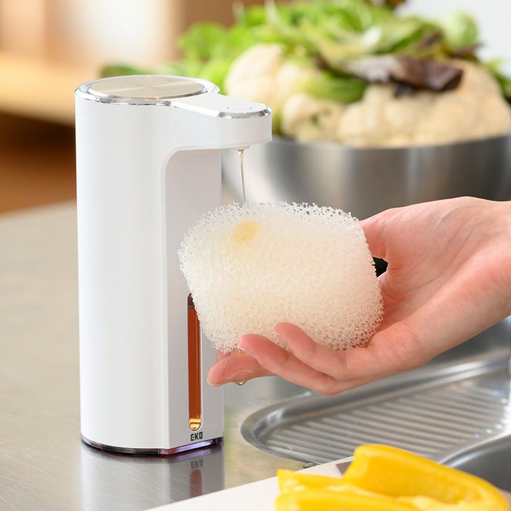 手をかざすだけで自動で洗剤が出てくるディスペンサーです。 本体に触れることが無いので衛生的です。 ソープの量を3段階調節することが出来ます。 USB充電式なので面倒な電池交換が必要ありません。