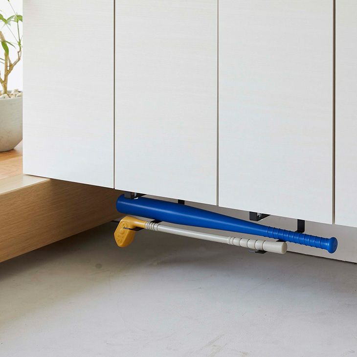 玄関の下駄箱の棚下に差し込むだけ!置き場所に困る掃除道具を浮かせて収納できるハンガー2個組。
