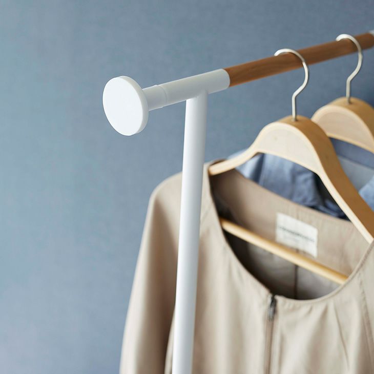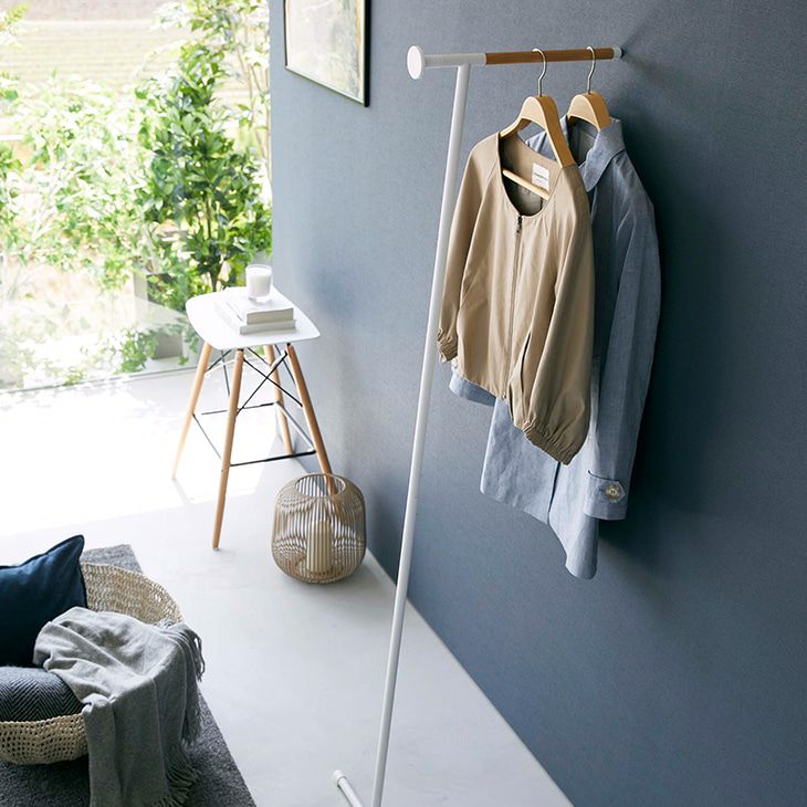 ハンガーに掛けたまま衣類スチーマーをあてられる立て掛け式アイロン掛けハンガー。
