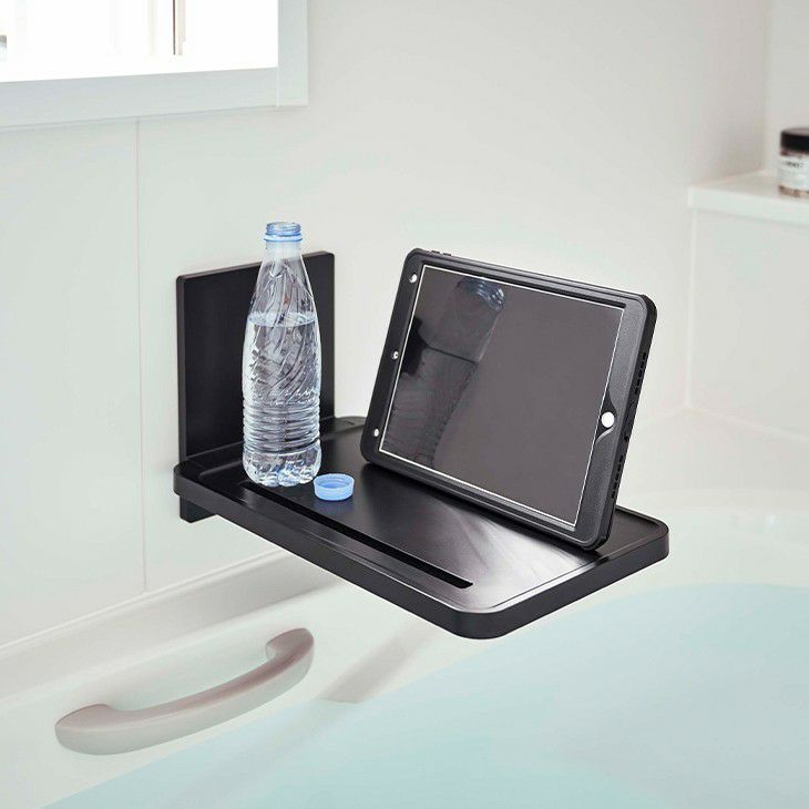 - 浴室壁面に付けるだけ!リラックスタイムを楽しむ折り畳み式の棚。