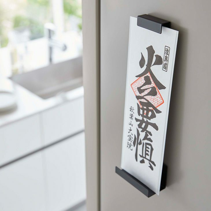 神札を壁から浮かせて祀ることができて、冷蔵庫や玄関扉の汚れが付きません。
