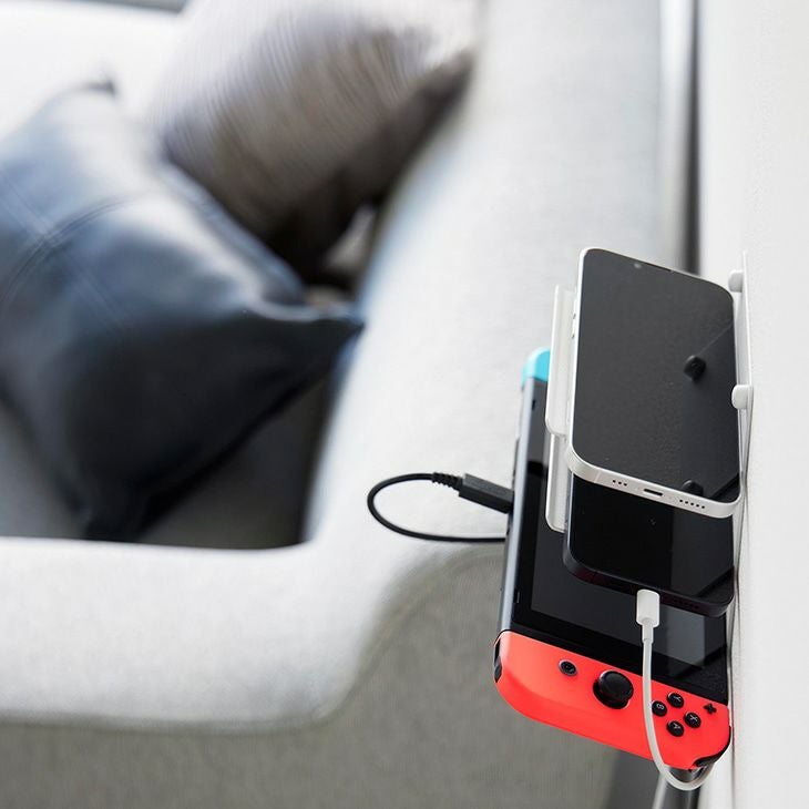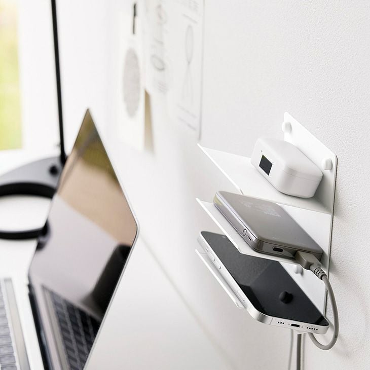 デスク周りやリビングに取り付ければ、スマホやイヤホン、モバイルバッテリー、ゲーム機などを充電しながら収納できます。