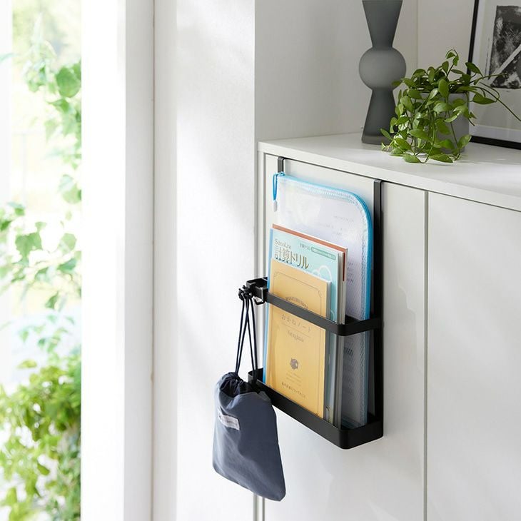 - 宿題・タブレット・雑誌など、よく手に取る物をキャビネットの扉に引っ掛けて一括収納!