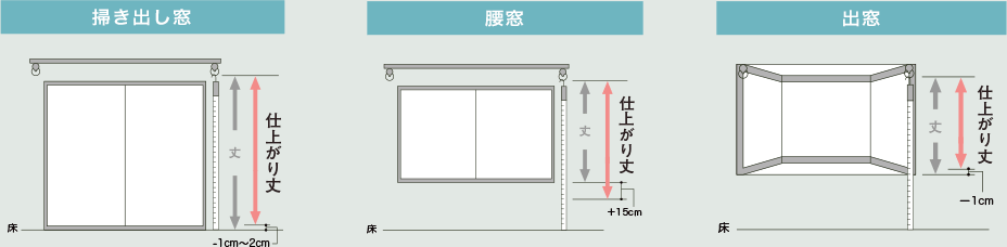 測った丈から仕上がりサイズ(注文サイズ)を計算します。計算方法は、窓の種類によって異なります。