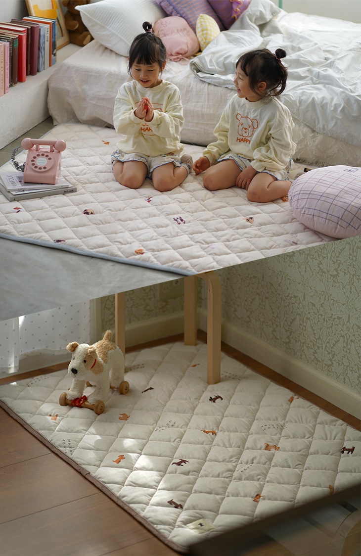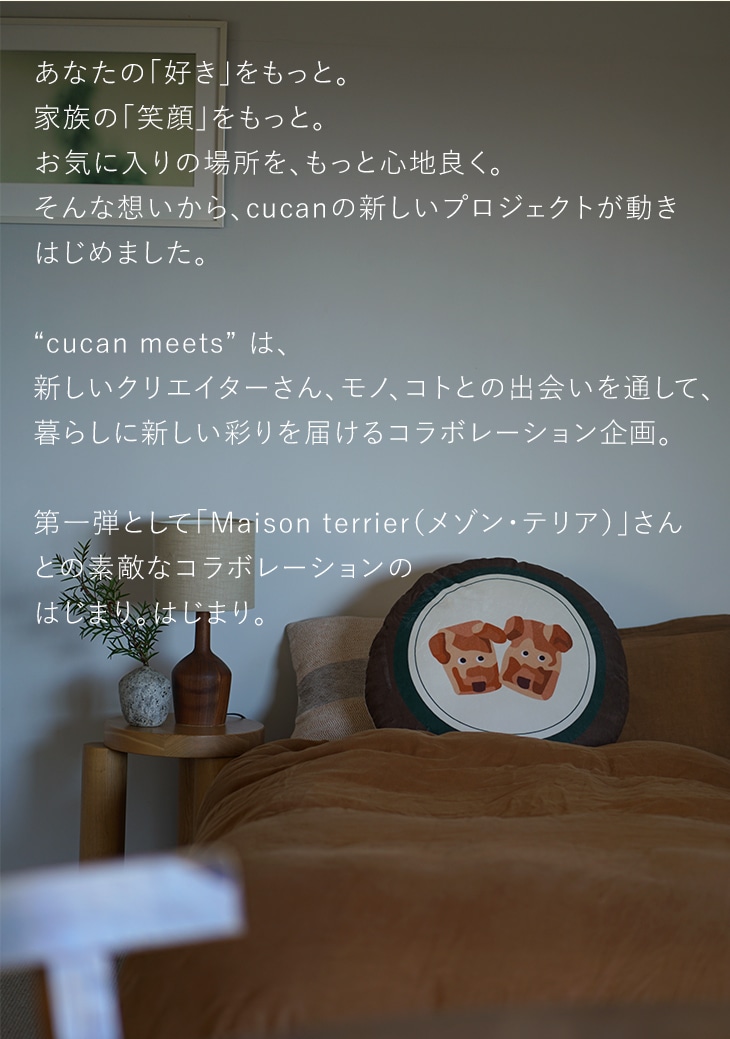 メゾンテリアさんとの第一弾に相応しい、クッキー犬とケーキ犬の2種類のワンちゃんを選べるキルトラグ。デイリーに使いやすい機能盛りだくさんで、オールシーズン使えます♪
